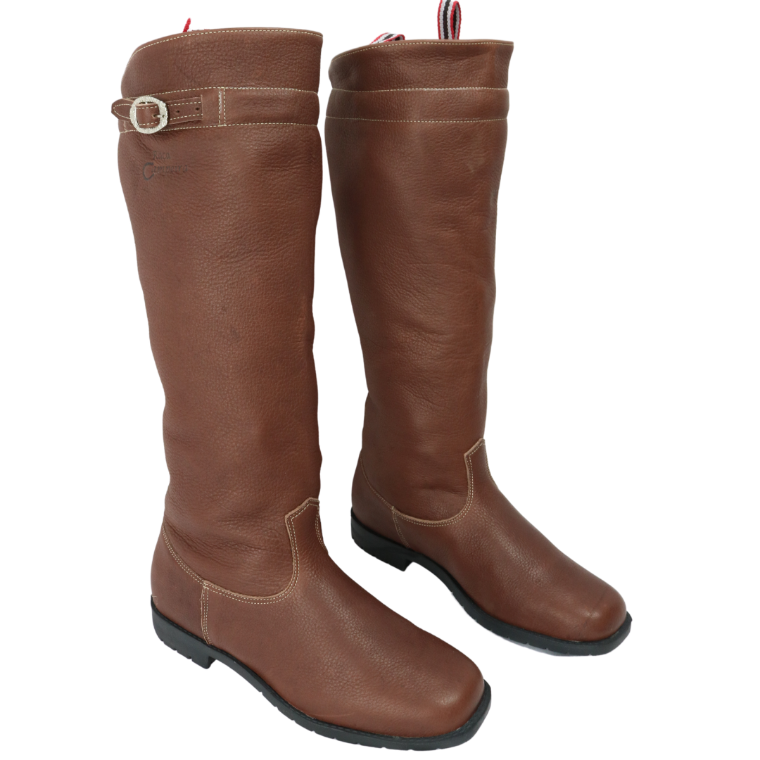 Bota ideal para cavaleiros pela alma de aço da unisola que dá a firmeza aos pés nos estribos e impede que o taco da seja removido, garantindo assim a segurança do cavaleiro. Conforto garantido pela maciez do couro, forro em tecido, solado flexível e palmilha macia.