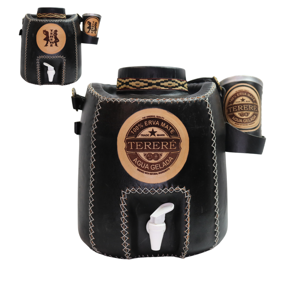 Seu sistema de torneira facilita o uso e evita desperdícios, enquanto a alça de couro legítimo integrada ao corpo garantem praticidade no transporte e na estabilidade do produto.