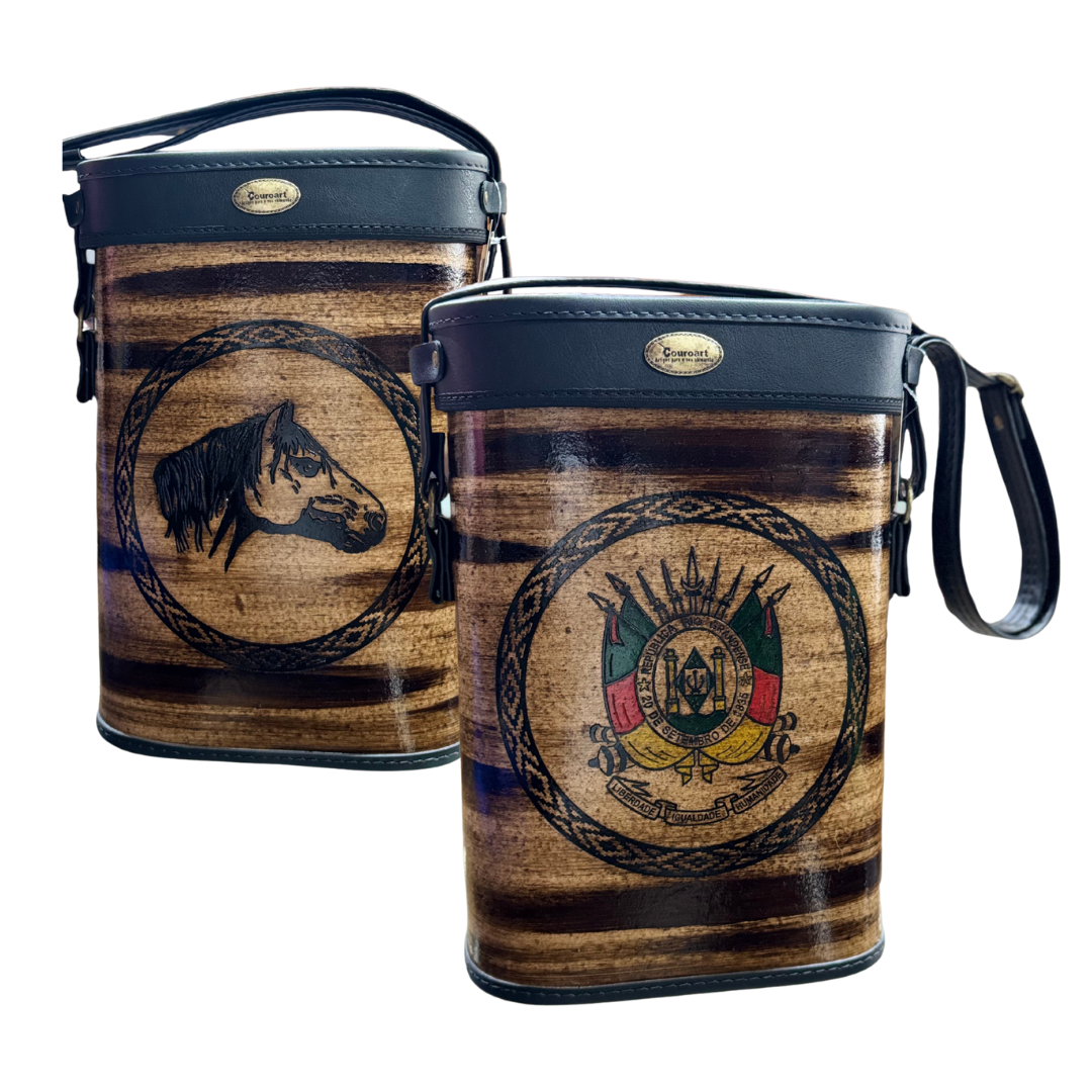Mateira de Couro Sintético Resistente, Tamanho compatível com garrafa termica de 1 Litro modelos com ampola das marcas termolar, mor e invicta. Essa mateira já vem personalizada na frente.