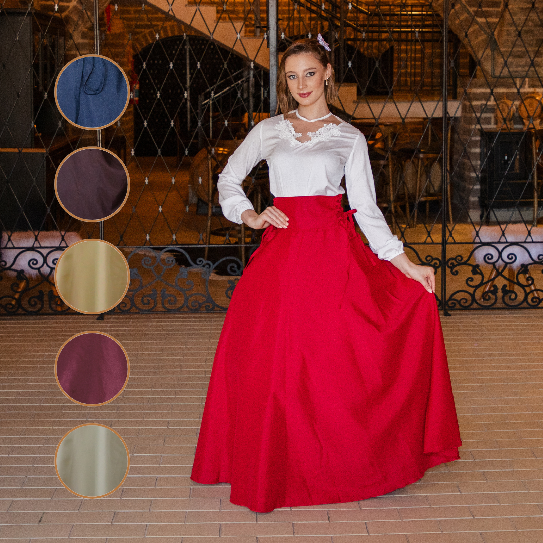 A Saia de Prenda Trancilin da cusco tem a vantagem e de você poder reduzir até dois tamanhos através da regulagem em fios trançados nas laterais (trancilin). O cós em tecido duplo tem altura de 12cm e em ambas laterais possui um trançado em fios do mesmo tecido, o qual ao apertar e amarrar diminui o tamanho da saia. Tecido oxford sem elastano. Fechamento por zíper invisível.